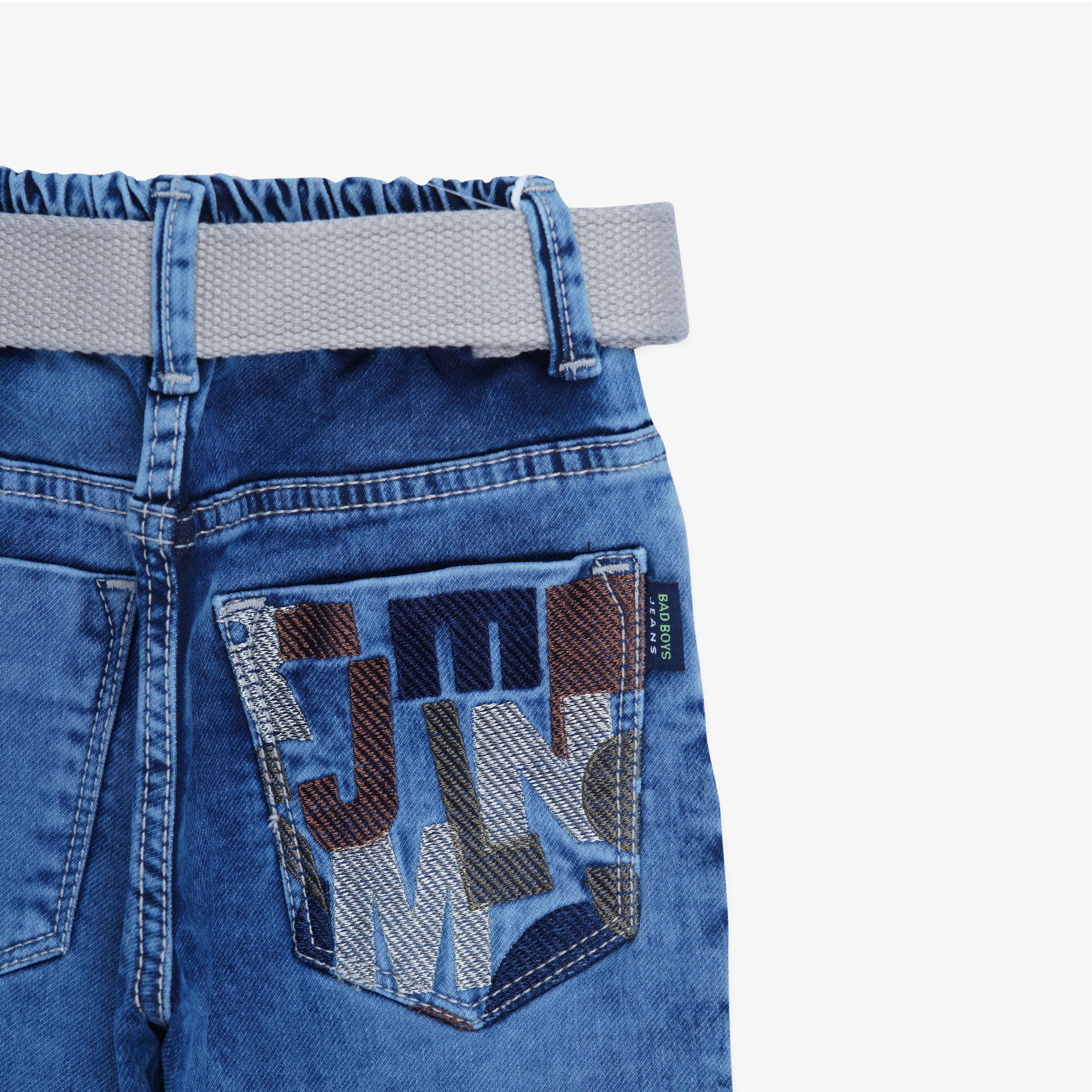 Give your little champ a stylish look with these classic blue denim jeans featuring a comfortable elastic waistband and a smart adjustable grey belt. Crafted from soft and durable denim fabric, these jeans ensure all-day comfort and a trendy appearance.